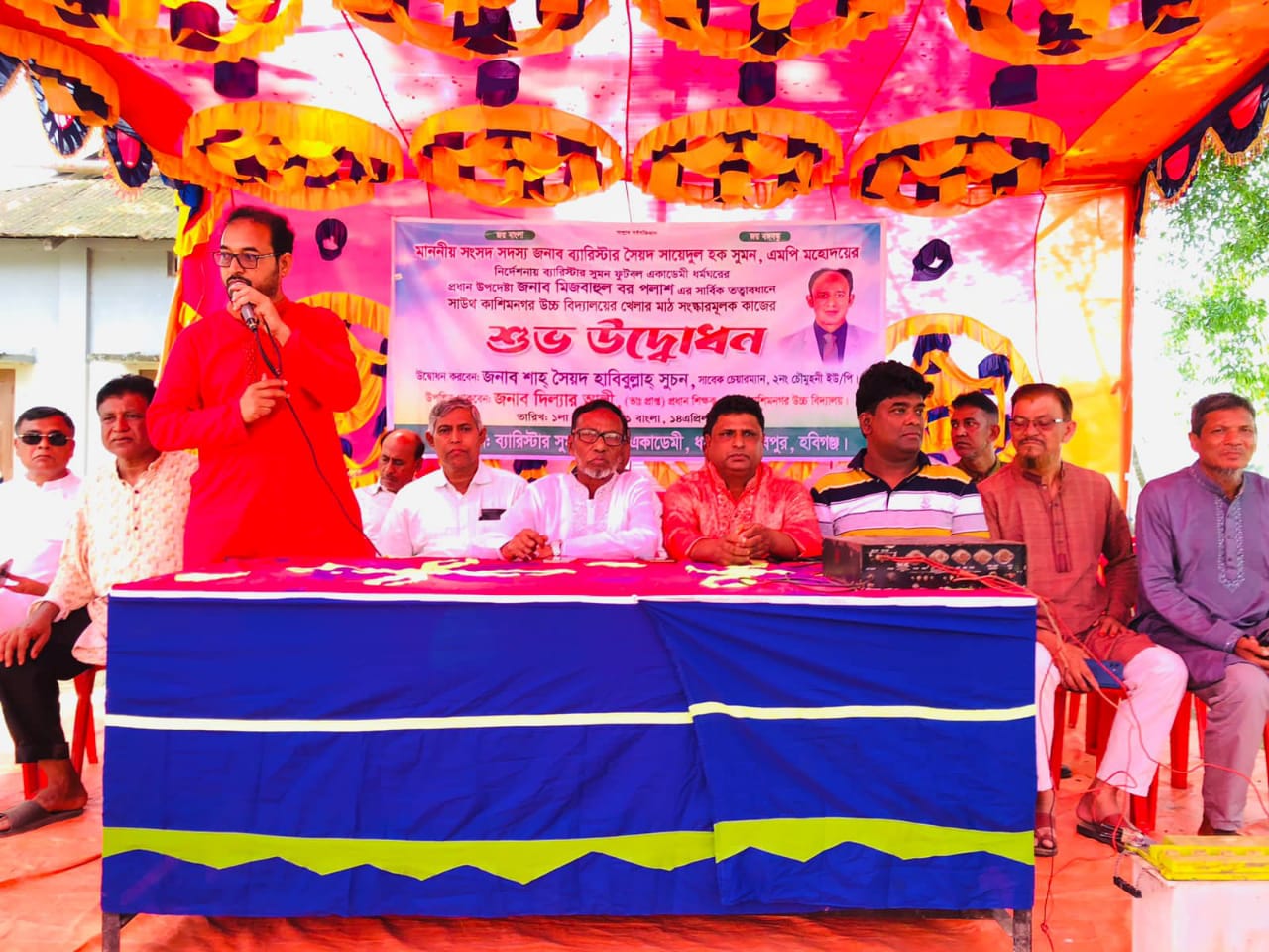 মাধবপুরে ব্যারিস্টার সৈয়দ সায়েদুল হক সুমন ফুটবল মাঠের সংস্কার কাজের শুভ উদ্বোধন