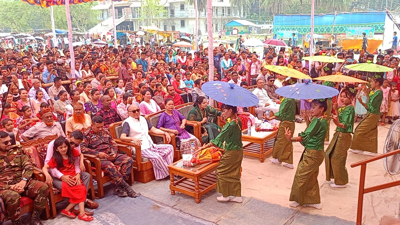 রাঙামাটির কাপ্তাই চিৎমরমে জলকেলি সাংগ্রাঁই জল উৎসবে মেতেছে তরুণ তরুণীরা