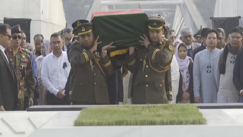 স্বামী জিয়াউর রহমানের কবরের পাশে সমাহিত হলেন সাবেক প্রধানমন্ত্রী ও বিএনপি চেয়ারপারসন খালেদা জিয়া। আজ বুধবার (৩১ ডিসেম্বর) বিকাল সাড়ে ৪টার দিকে জাতীয় সংসদ ভবন সংলগ্ন জিয়া উদ্যানে তাকে গার্ড অব অনার দেন সশস্ত্র বাহিনীর সদস্যরা। এর পর তাকে স্বামীর সমাধির পাশে রাষ্ট্রীয় মর্যাদায় সমাহিত করা হয়।