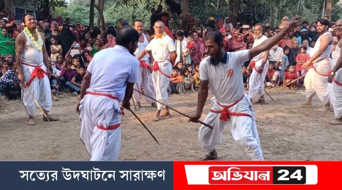 ব্রাহ্মণবাড়িয়া নবীনগর উপজেলার চর গোসাইপুর বকসি বাড়ী প্রবাসী সমাজ কল্যাণ সংগঠনের উদ্যোগে গ্রাম বাংলার ঐতিহ্যবাহী লাঠি খেলা অনুষ্ঠিত হয়েছে। শুক্রবার (২৭ ডিসেম্বর) বিকালে চরগোসাইপুর পশ্চিমপাড়া বকসি বাড়িতে এই লাঠি খেলাটি