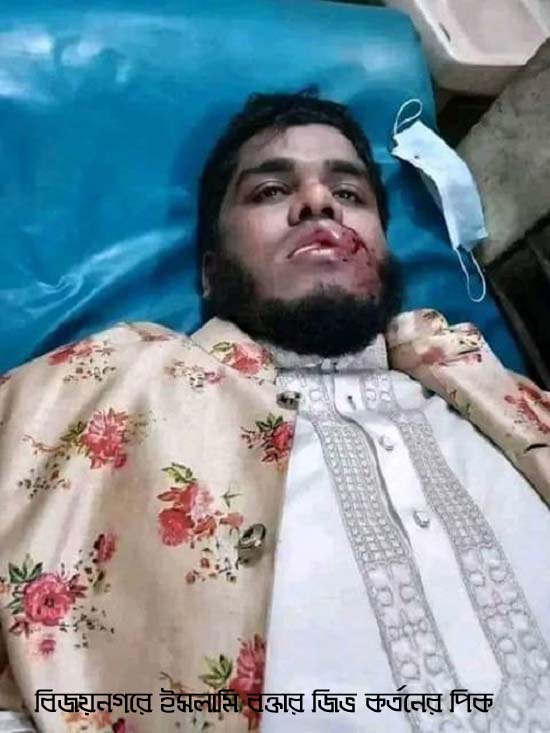 বিজয়নগর ( ব্রাহ্মণবাড়িয়া) প্রতিনিধি: ব্রাহ্মণবাড়িয়ার বিজয়নগরে ইসলামি বক্তার জিভ কর্তন করেছেন দুর্বৃত্তরা। এ নিয়ে আজ রবিবার বেলা ১২ টার সময় উপজেলার শ্রীপুর ইসলামিয়া ফাজিল মাদ্রসায় মানববন্ধন করেছেন ছাত্র ছাত্রীরা। মানববন্ধনে
