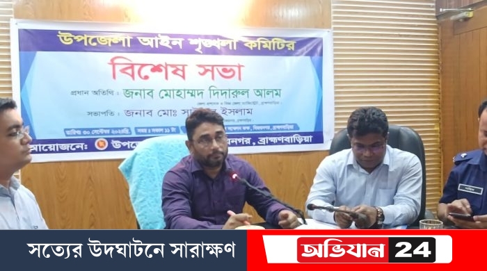 বিজয়নগরে আইনশৃঙ্খলা কমিটির মাসিক সভা অনুষ্ঠিত হয়েছে।আজ সোমবার সকালে উপজেলা পরিষদ হলে উপজেলা নির্বাহী অফিসার মো: সাইফুল ইসলামের সভাপতিত্বে প্রধান অতিথি ছিলেন ব্রাহ্মণবাড়িয়ার জেলা প্রশাসক মোহাম্মদ দিদারুল আলম।এতে বক্তব্য রাখেন