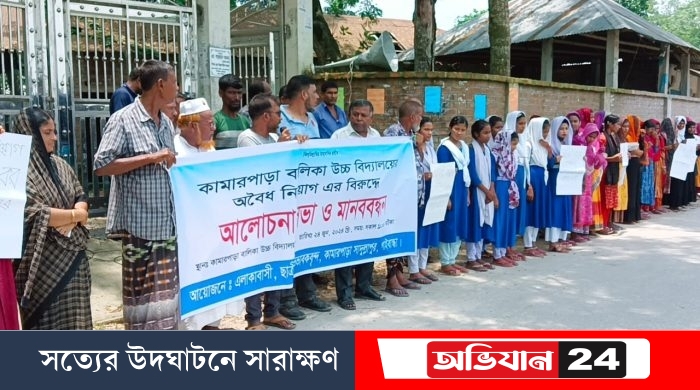 শেখ নাসির আহমেদ, গাইবান্ধা প্রতিনিধি: গাইবান্ধার সাদুল্লাপুর উপজেলার কামারপাড়া বালিকা উচ্চ বিদ্যালয়ে অবৈধ নিয়োগ বাতিল ও সভাপতিকে অপসারণের দাবিতে মানববন্ধন অনুষ্ঠিত হয়েছে। ২৪ জুন সোমবার দুপুর ১২টায় এলাকাবাসী ও শিক্ষার্থীদের