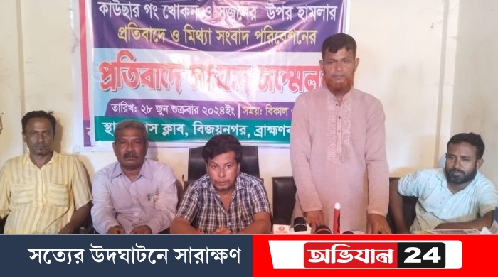 অভিযান ২৪ ডেস্ক: ব্রাহ্মণবাড়িয়া বিজয়নগরের চান্দুরা ইউনিয়নের সাতগাঁও গ্রামের সাবেক যুবলীগের সাংগঠনিক সম্পাদক মোঃ কাউছার মিয়ার বিরুদ্ধে সংবাদ সম্মেলন করেছেন একই গ্রামের ফজলুর রহমানের ২ ছেলে খোকন ও সুজন। ২৮