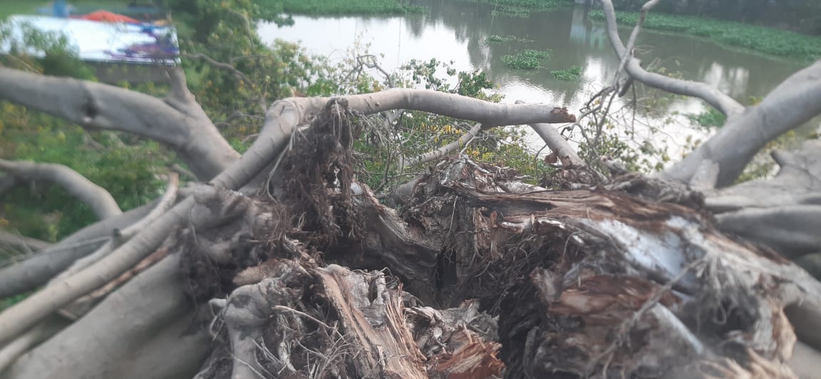 আশেপাশের লোকজন জানান, ঐদিন রাত ১২টা ৫ মিনিটে বিকট আওয়াজ হয় । এক পর্যায়ে গাছটিকে শিকড় সহ ভেঙ্গে পড়ে যায় ।